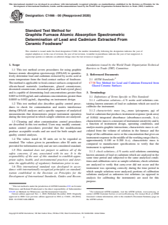 ASTM C1466-00(2020) - Standard Test Method for Graphite Furnace Atomic Absorption Spectrometric Determination of Lead and Cadmium Extracted From Ceramic Foodware