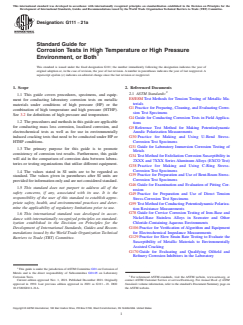 ASTM G111-21a - Standard Guide for Corrosion Tests in High Temperature or High Pressure Environment, or Both
