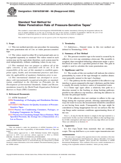 By offering a standardized method for evaluating the water penetration characteristics of pressure-sensitive tapes, ASTM D3816/D3816M-96(2020) helps manufacturers, quality assurance professionals, and end-users to make informed decisions about product performance and suitability.