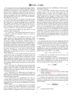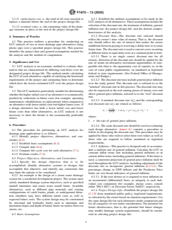 SIGNIFICANCE AND USE 5.1 LCC analysis is an economic method to evaluate alternatives that are characterized by differing cash flows over the designated project design life. The method entails calculating the LCC of each alternative capable of satisfying the functional requirements of the project and comparing them to determine which have the lowest estimated LCC over the project design life. 5.2 The LCC method is particularly suitable for determining whether the higher initial cost of an alternative is economically justified by reductions in future costs (for example, operating maintenance, rehabilitation, or replacement) when compared to an alternative with lower initial costs but higher future costs. If a design alternative has both a lower initial cost and lower future costs than other alternatives, an LCC analysis is not necessary to show the former is the economically preferable choice. SCOPE 1.1 This practice establishes a procedure for using life cycle cost (LCC) analysis techniques to evaluate alternative drainage system designs, using plastic pipe that satisfy the same functional requirements. 1.2 The LCC technique measures the present value of all relevant costs to install, operate, and maintain alternative drainage systems such as engineering, construction, maintenance, rehabilitation, or replacement over a specified period of time. The practice also accommodates any remaining residual or salvage value. 1.3 The decision maker, using the results of the LCC analysis, can then identify the alternative(s) with the lowest estimated total cost based on the present value of all costs. 1.4 This standard does not purport to address all of the safety concerns, if any, associated with its use. It is the responsibility of the user of this standard to establish appropriate safety, health, and environmental practices and determine the applicability of regulatory limitations prior to use. 1.5 This international standard was developed in accordance with internationally recognized principles on standardization established in the Decision on Principles for the Development of International Standards, Guides and Recommendations issued by the World Trade Organization Technical Barriers to Trade (TBT) Committee.