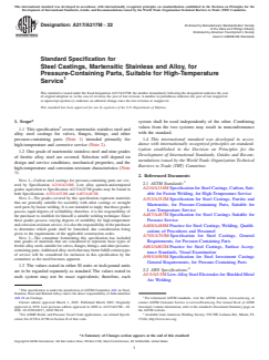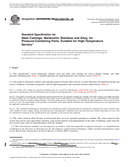 1.1 This specification2 covers martensitic stainless steel and alloy steel castings for valves, flanges, fittings, and other pressure-containing parts (Note 1) intended primarily for high-temperature and corrosive service (Note 2).
