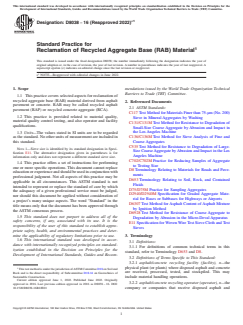 ASTM D8038-16(2022)e1 - Standard Practice for Reclamation of Recycled Aggregate Base (RAB) Material