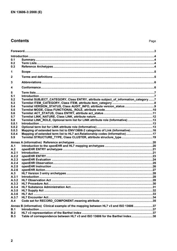Clinical example of the mapping between HL7 v3 and ISO 13606.37 B.1 Introduction.37 B.2 HL7 v3 representation of the Barthel Index.37 B.3 Table of correspondence between HL7 v3 and ISO 13606 for the Barthel Index.38