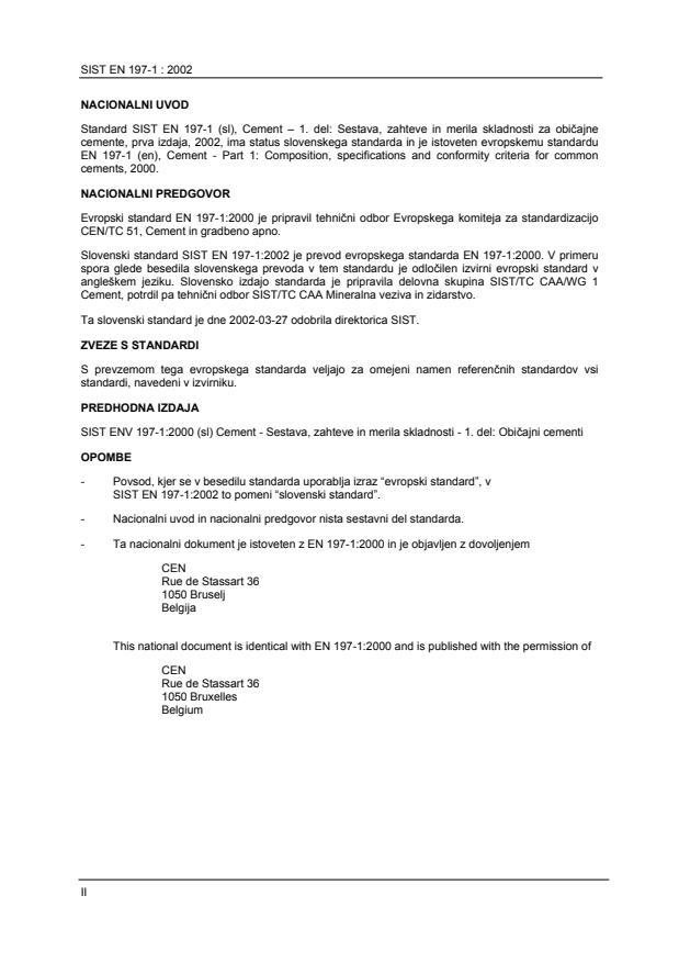 Slovenski standard SIST EN 197-1:2002 je prevod evropskega standarda EN 197-1:2000. V primeru