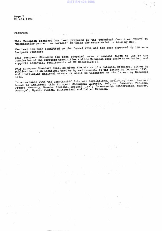 2003-01.Slovenski inštitut za standardizacijo. Razmnoževanje celote ali delov tega standarda ni dovoljeno.Atemschutzgeräte für Selbstrettung - Filterselbstretter - Anforderungen, Prüfungen, KennzeichnungAppareils de protection respiratoire pour l'évacuation - Appareil d'évacuation a filtre - Exigences, essais, marquageRespiratory protective devices for self-rescue - Filter self-rescuer - Requirements, testing, marking13.340.30Varovalne dihalne napraveRespiratory protective devicesICS:Ta slovenski standard je istoveten z:EN 404:1993SIST EN 404:1996en01-april-1996SIST EN 404:1996SLOVENSKI