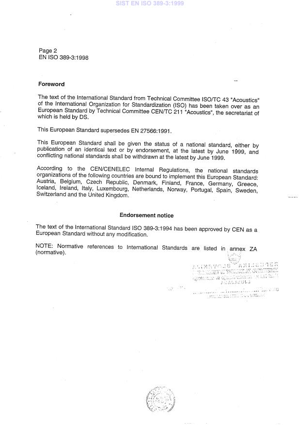 EN ISO 389-3:1998 is classified under the following ICS (International Classification for Standards) categories: 13.140 - Noise with respect to human beings. The ICS classification helps identify the subject area and facilitates finding related standards.