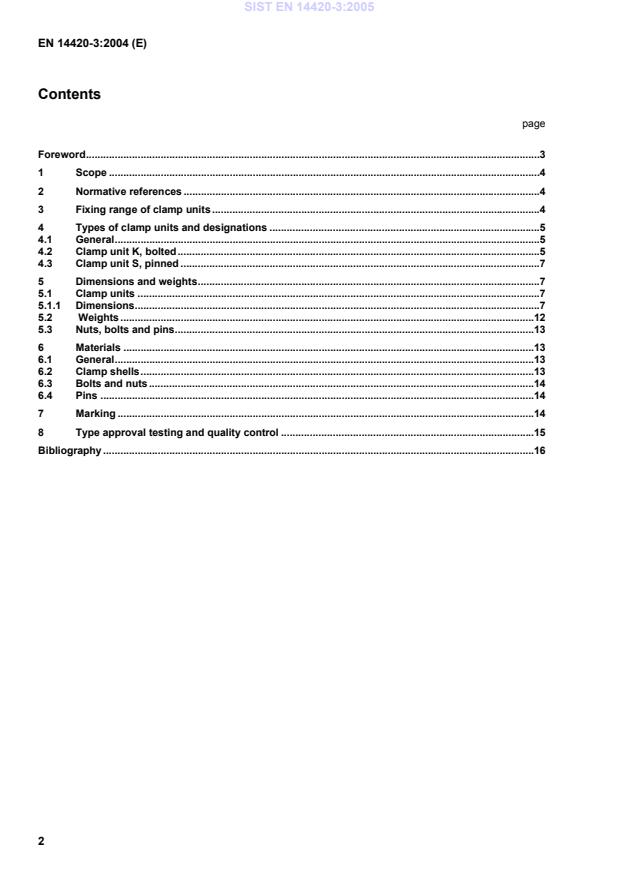Weights.12 5.3 Nuts, bolts and pins.13 6 Materials.13 6.1 General.13 6.2 Clamp shells.13 6.3 Bolts and nuts.14 6.4 Pins.14 7 Marking.14 8 Type approval testing and quality control.15 Bibliography.16
