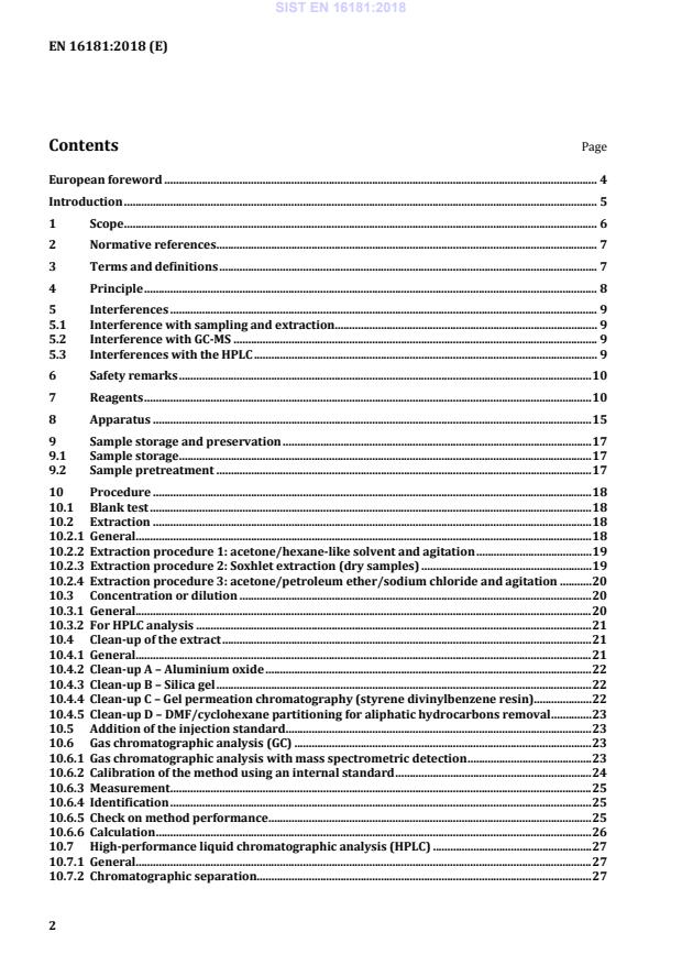 Blato, tla in obdelani biološki odpadki se lahko razlikujejo glede lastnosti, predvidenih ravni onesnaženja s policikličnimi aromatskimi ogljikovodiki ter prisotnosti motečih snovi. Zaradi teh razlik ni možen opis enotnega splošnega postopka. Ta evropski standard vključuje tabele odločanja, ki temeljijo na lastnostih vzorca, ter postopek za ekstrakcijo in očiščenje, ki ga je treba uporabiti. Upoštevata se dve splošni smernici, in sicer stresanje ali tekočinska ekstrakcija po Soxhletu/pod tlakom.
