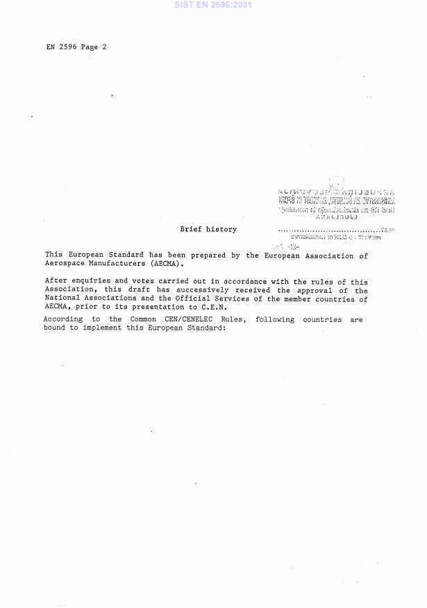 Ta slovenski standard je istoveten z: EN 2596:1988