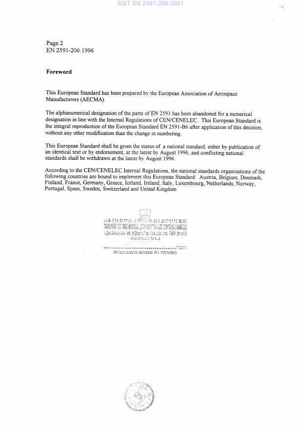 EN 2591-206:1996 has the following relationships with other standards: It is inter standard links to EN 3660-005:2023, EN 3155-076:2012, EN 4639-102:2007, EN 3155-075:2022, EN 3155-024:2006, EN 3155-071:2007, EN 3155-026:2019, EN 3155-058:2006, EN 2591-214:2012, EN 3155-070:2019, EN 3155-027:2019, EN 3155-025:2006, EN 3155-045:2019, EN 3155-032:2009, EN 3155-056:2006. Understanding these relationships helps ensure you are using the most current and applicable version of the standard.
