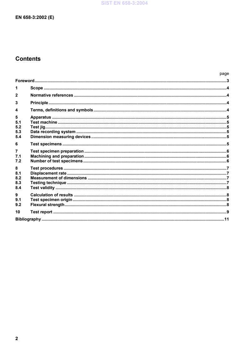 EN 658-3:2002 is a standard published by the European Committee for Standardization (CEN). Its full title is "Advanced technical ceramics - Mechanical properties of ceramic composites at room temperature - Part 3: Determination of flexural strength". This standard covers: This part of EN 658 specifies the conditions for the determination of the flexural strength of ceramic matrix composite materials with continuous fibre reinforcement, under three-point or four-point bending at ambient temperature. This standard applies to all ceramic matrix composites with a continuous fibre reinforcement, unidirectional (1D), bidirectional (2D), and tridirectional xD with (2 < x <= 3), loaded along one principal axis of reinforcement.