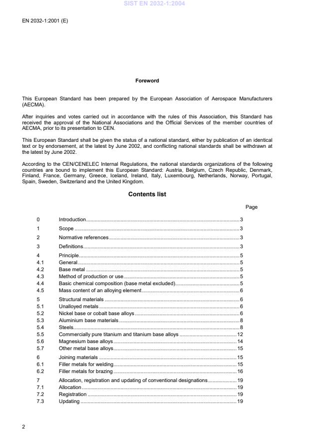 EN 2032-001:2014 - Aerospace series - Metallic materials - Part 001: Conventional designation - Effective Date