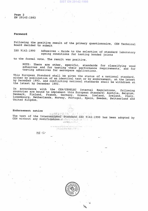 EN 29142:1993 is classified under the following ICS (International Classification for Standards) categories: 83.180 - Adhesives. The ICS classification helps identify the subject area and facilitates finding related standards.