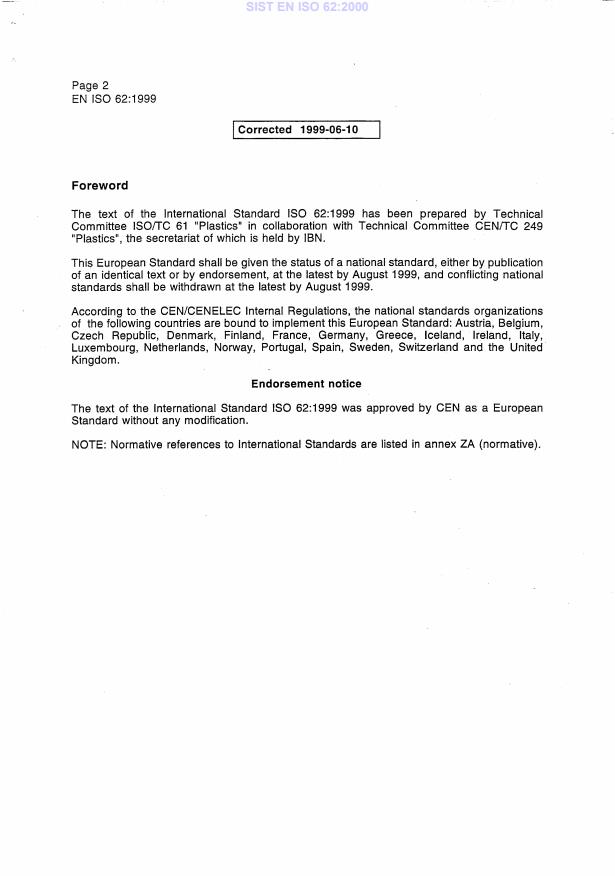 International Standard ISO 62 was prepared by Technical Committee ISO/TC 61, Plastics, Subcommittee SC 6,