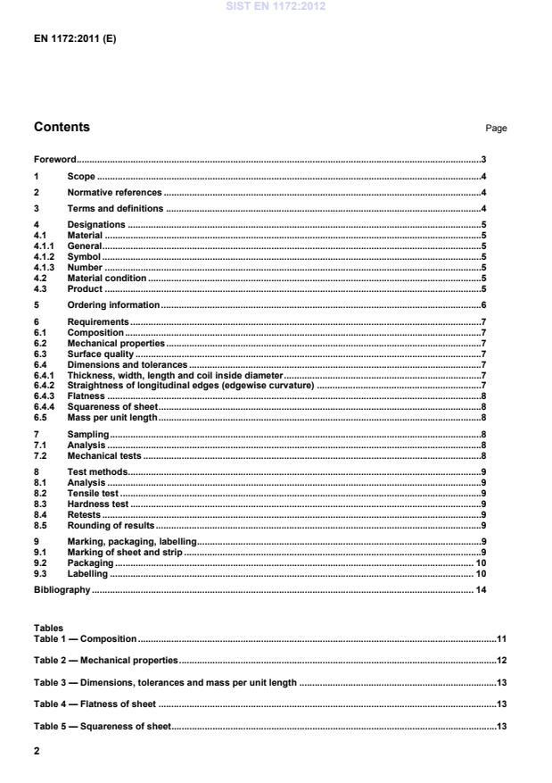 (ISO 6892-1:2009) ISO 1811-2, Copper and copper alloys — Selection and preparation of samples for chemical analysis — Part 2: Sampling of wrought products and castings ISO 4739, Wrought copper and copper alloy products — Selection and preparation of specimens and test pieces for mechanical testing ISO 80000-1:2009, Quantities and units — Part 1: General 3 Terms and definitions For the purposes of this document, the following terms and definitions apply. 3.1 sheet flat rolled product of rectangular cross-section with uniform thickness from 0,4 mm up to and including 1,0 mm and with width up to and including 1 250 mm, supplied in straight lengths with sheared edges NOTE 1 Sheet is usually cut from strip. NOTE 2 Adapted from ISO 197-3:1983. 3.2 strip flat rolled product of rectangular cross-section with uniform thickness from 0,4 mm up to and including 1,0 mm and with width up to and including 1 250 mm, manufactured in coil and supplied with sheared edges NOTE Adapted from ISO 197-3:1983. SIST EN 1172:2012