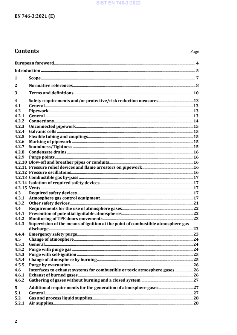 This part of the EN 746 series also details the anticipated significant hazards associated with atmosphere gas systems and their use in TPE and specifies the appropriate preventative measures for the reduction or elimination of these hazards.