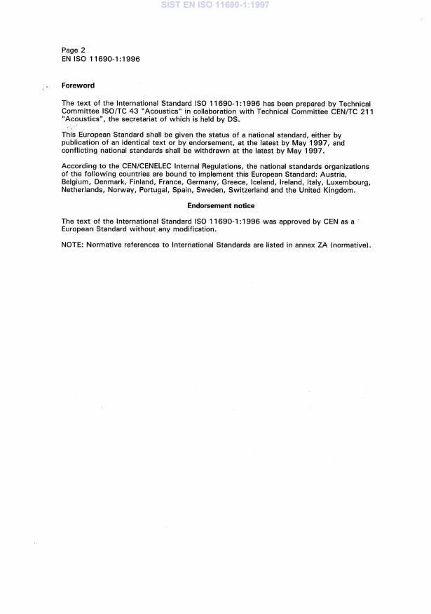 Acoustics - Recommended practice for the design of low-noise workplaces containing machinery - Part 1: Noise control strategies (ISO 11690-1:1996)