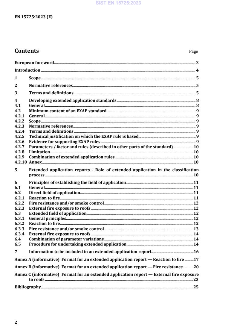 EN 15725:2023 is a standard published by the European Committee for Standardization (CEN). Its full title is "Extended application on the fire performance of construction products and building elements: Principle of EXAP standards and EXAP reports". This standard covers: This document gives the procedures for preparing standards and reports following the extended application (EXAP) process using the results of reaction to fire tests, fire resistance tests (including other performance characteristics e.g. smoke leakage/control and/or durability of self-closing), and external fire exposure to roof tests undertaken for fire classification of products and product families in accordance with the various parts of EN 13501. EXAP rules limit the number of tests required by implementing methods to determine the fire classification of a range of products (e.g. range of product, larger dimensions etc.) and EXAP rules form a standardized technical agreement on the parameter changes. The fundamental concept of EXAP is the development of safe methods that provide extensions to the scope of the tested product while maintaining the required classification for the product. Test reports constitute the basis of an EXAP report. This document makes reference to ‘extended application standards’ throughout; wherever this term is used it refers to either a standard prepared by CEN/TC 127 ‘Fire safety in buildings’ or the relevant product standard which includes information on extended application. The European system currently permits extended application rules to be included in technical specifications. CEN Technical Committees and EOTA Working groups producing these rules are asked to seek the guidance of CEN/TC 127 to ensure that their rules comply with standards prepared by CEN/TC 127. In cases where extended application rules in harmonized EN product standards and ETAs do not comply with standards prepared by CEN/TC 127 the CEN BT are informed. This document does not cover the incorporation of the product into the construction works that is justified by national rules. Expert judgements (i.e. an opinion that is not considered/covered by an EXAP standard and only based on the experience of one individual) do not form part of this process.