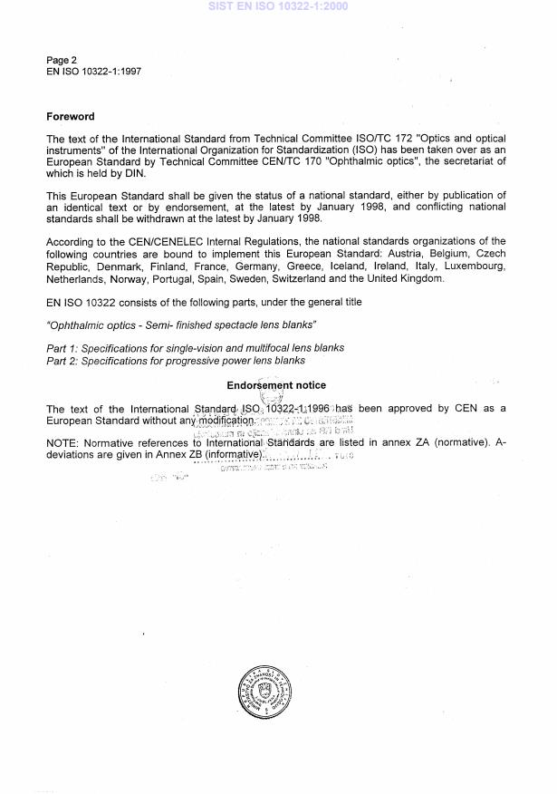 EN ISO 10322-1:1997 is a standard published by the European Committee for Standardization (CEN). Its full title is "Ophthalmic optics - Semi-finished spectacle lens blanks - Part 1: Specifications for single-vision and multifocal lens blanks (ISO 10322-1:1996)". This standard covers: Dieser Teil von ISO 10322 legt Anforderungen an die optischen und geometrischen Eigenschaften von einseitig fertigen Ein- und Mehrstärken-Brillenglasblanks fest. Die Anforderungen an einseitig fertige Gleitsicht-Brillenglasblanks sind in ISO 10322-2 festgelegt.