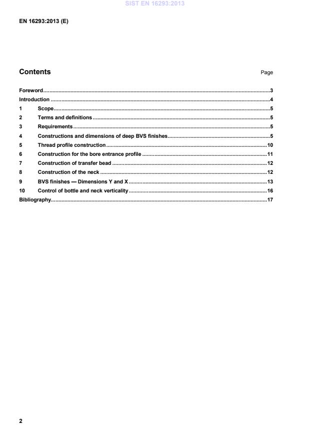 EN 16293:2013 is a standard published by the European Committee for Standardization (CEN). Its full title is "Packaging - Glass Packaging - Deep BVS finishes for still wines". This standard covers: This European Standard specifies dimensions of a series of deep screw finishes for the closure of wines with a CO2 content below 1,2 grams per litre. NOTE Carbonation >1,2 g/l CO2 requires a suitable container and closure agreed between the glass maker, closure maker and packer/filler.