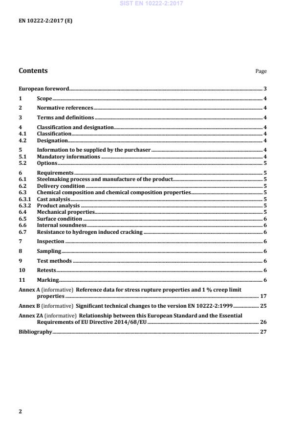 — Part 1: General requirements for open die forgings — Part 2: Ferritic and martensitic steels with specified elevated temperature properties — Part 3: Nickel steels with specified low temperature properties — Part 4: Weldable fine grain steels with high proof strength — Part 5: Martensitic, austenitic and austenitic-ferritic stainless steels. Annex B provides details about significant technical changes to EN 10222-2:1999. According to the CEN-CENELEC Internal Regulations, the national standards organisations of the following countries are bound to implement this European Standard: Austria, Belgium, Bulgaria, Croatia, Cyprus, Czech Republic, Denmark, Estonia, Finland, Former Yugoslav Republic of Macedonia, France, Germany, Greece, Hungary, Iceland, Ireland, Italy, Latvia, Lithuania, Luxembourg, Malta, Netherlands, Norway, Poland, Portugal, Romania, Serbia, Slovakia, Slovenia, Spain, Sweden, Switzerland, Turkey and the United Kingdom. SIST EN 10222-2:2017