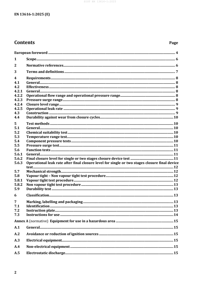 - Detailed test methods: chemical suitability, temperature range, component pressure tests, pressure surge, function tests, mechanical strength, vapour tight / non‑vapour tight procedures, and durability (closure cycling).