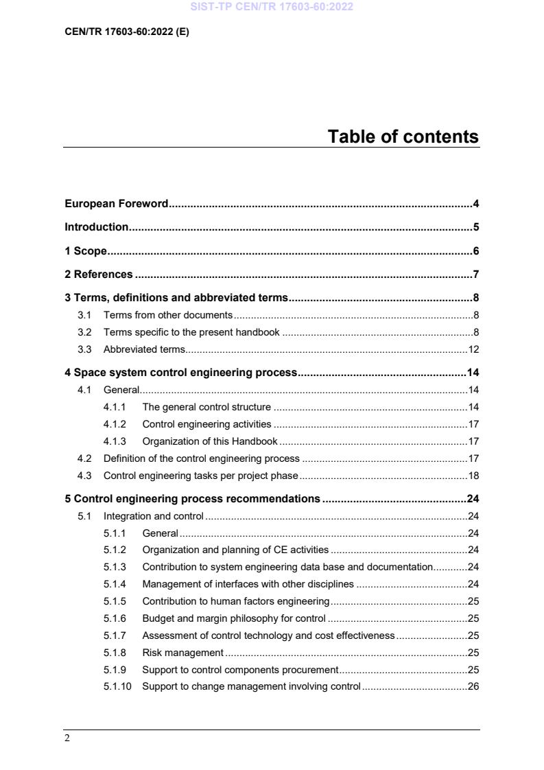 CEN/TR 17603-60:2022 is a technical report published by the European Committee for Standardization (CEN). Its full title is "Space engineering - Control engineering handbook". This standard covers: This Handbook deals with control systems developed as part of a space project. It is applicable to all the elements of a space system, including the space segment, the ground segment and the launch service segment. The handbook covers all aspects of space control engineering including requirements definition, analysis, design, production, verification and validation, transfer, operations and maintenance. It describes the scope of the space control engineering process and its interfaces with management and product assurance, and explains how they apply to the control engineering process.