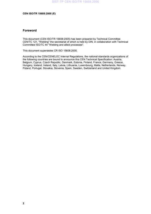 This document (CEN ISO/TR 15608:2005) has been prepared by Technical Committee