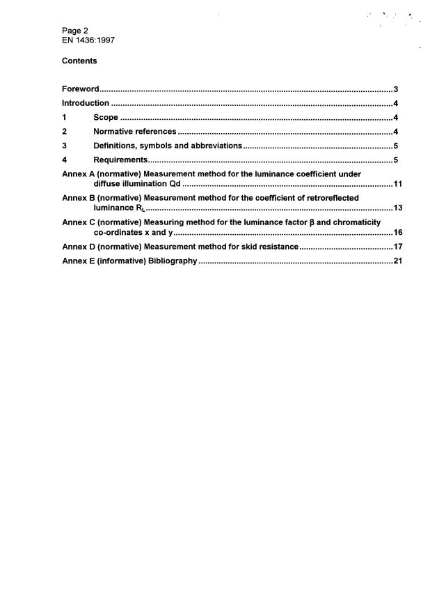 This standard specifies the performance for road users of white and yellow road marking, as expressed by their reflection in daylight and under road lighting, retroreflection in vehicle headlamp illumination, colour and skid resistance.