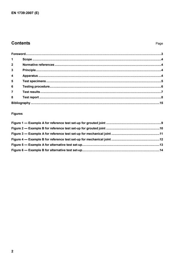 Figures Figure 1 — Example A for reference test set-up for grouted joint.9 Figure 2 — Example B for reference test set-up for grouted joint.10 Figure 3 — Example A for reference test set-up for mechanical joint.11 Figure 4 — Example B for reference test set-up for mechanical joint.12 Figure 5 — Example A for alternative test set-up.13 Figure 6 — Example B for alternative test set-up.14
