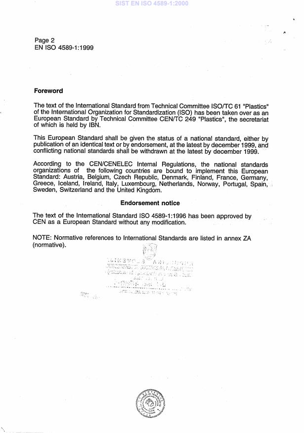 International Standard IS0 4589-1 was prepared by Technicall Committee ISO/TC 61, Plastics, Subcommittee SC 4,