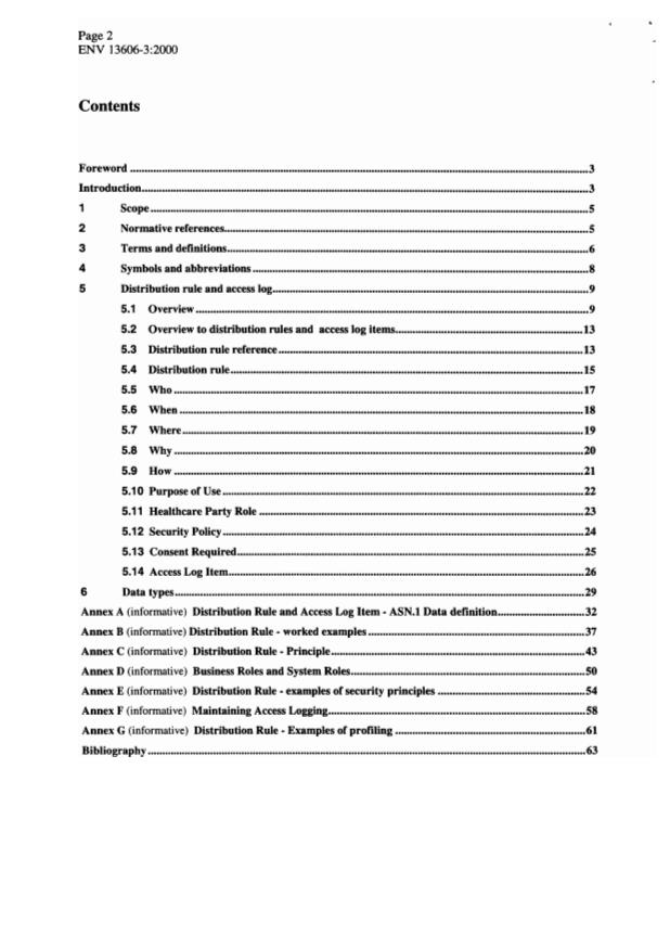 This European Prestandard specifies data objects for describing rules for distribution or sharing of electronic healthcare Records in whole or in part. This European Prestandard establishes general principles for the interaction of these data objects with other components and mechanisms within an electronic healthcare record application, thereby controlling the distribution of electronic healthcare records in whole or in part. This European Prestandard establishes ways of creating information with associated security attributes.