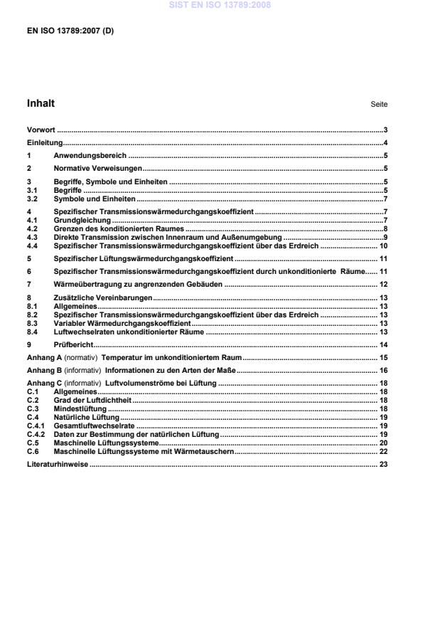 Diese Internationale Norm legt ein Verfahren zur Berechnung des stationären spezifischen Transmis¬sions  und des stationären spezifischen Lüftungswärmedurchgangskoeffizienten von vollständigen Gebäuden und Gebäude¬teilen fest und liefert die entsprechenden Vereinbarungen. Sie ist sowohl auf den Wärmeverlust (Innen¬temperatur höher als Außentemperatur) als auch auf den Wärmegewinn (Innentemperatur geringer als Außentemperatur) anwendbar. Für die Anwendung dieser Internationalen Norm wird für den beheizten oder gekühlten Raum eine einheitliche Temperatur angenommen.