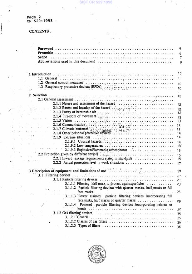 CR 529:1993 is a standardization document published by the European Committee for Standardization (CEN). Its full title is "Guidelines for selection and use of respiratory protective devices". This standard covers: These guidelines are intended to provide guidance for the selection and use of respiratory protective devices. The guidelines may be used wholly or in part by European countries in preparing recommendations for the use of RPD's in the workplace. If special needs exist in countries then these should be added to the national documents and CEN TC 79 should be advised about the workplace.