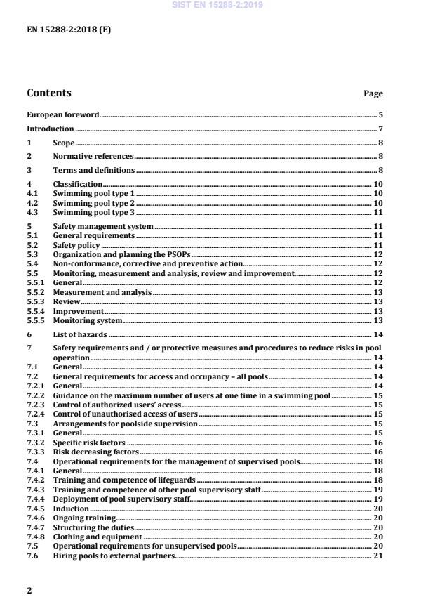 This document specifies safety requirements for the operation of classified pools according to Clause 4. It is intended for those concerned with the operation and management of classified swimming pools. It provides guidance about the risks for staff and users associated with public swimming pools, by identifying the precautions needed to achieve safety. This document has limited application to classified pools which consist of segregated areas of rivers, lakes or the sea. It is advised to follow the requirements for safe working methods and supervision insofar as they are relevant. National and/or local legislation may apply. This document is not applicable for domestic swimming pools according to EN 16582 (all parts). Further definitions of domestic swimming pools and/or use is given in EN 16582.