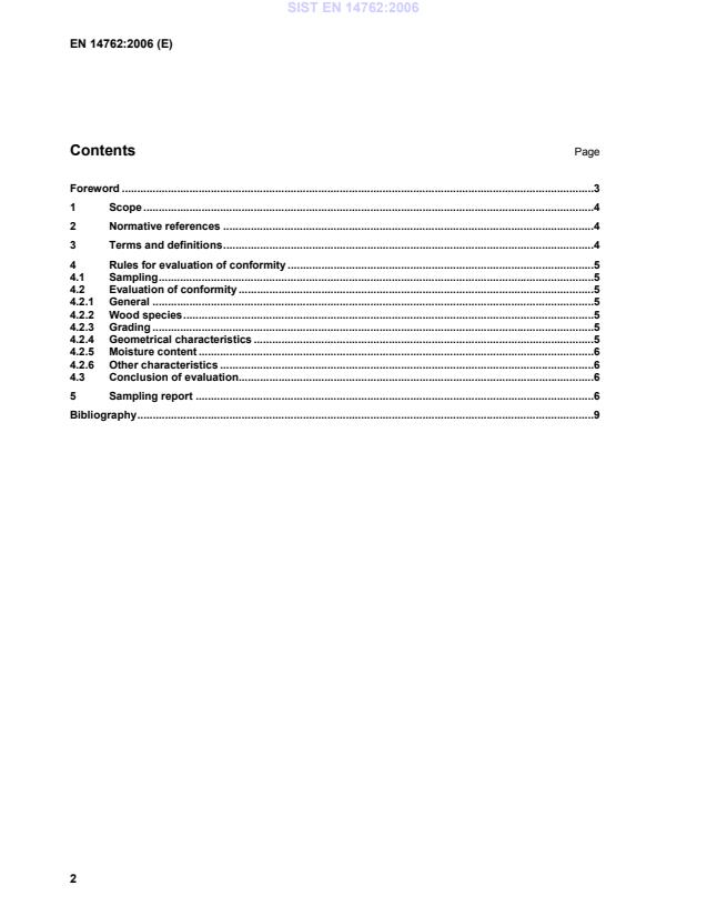 EN 14762:2006 is a standard published by the European Committee for Standardization (CEN). Its full title is "Wood flooring - Sampling procedures for evaluation of conformity". This standard covers: This European Standard defines the sampling procedures to be used for the evaluation of conformity in product standards for a batch of wood flooring elements at the time of first delivery of the product. It applies separately to each of the following characteristics: moisture content, dimensions and appearance. For the other characteristics, an evaluation procedure has to be defined case by case. This European Standard applies to EN 13226, EN 13227, EN 13228, EN 13488, EN 13629 and EN 14761. For EN 13489, only moisture and dimensions are concerned. This European Standard does not apply to EN 13990.