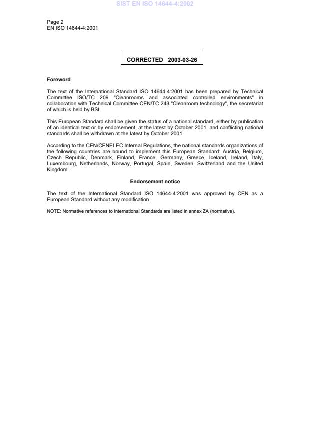 Ta slovenski standard je istoveten z: EN ISO 14644-4:2001