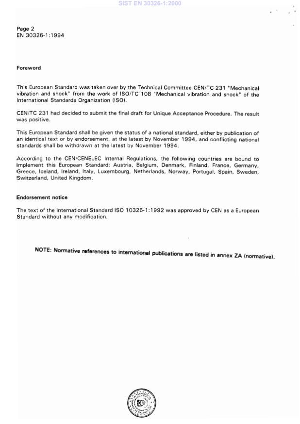 IS0 103264:1992(E) Introduction Drivers, staff and passengers of vehicles (land, air or water) and mobile off-road machinery are exposed to mechanical vibration which interferes with their comfort, working efficiency and, in some circumstances, safety and health. The following basic requirements have therefore been de- veloped for the laboratory testing of vibration transmission through a vehicle seat to the occupant. SIST EN 30326-1:2000
