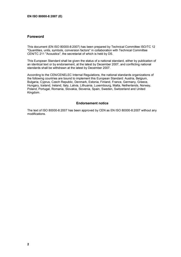 The text of ISO 80000-8:2007 has been approved by CEN as EN ISO 80000-8:2007 without any