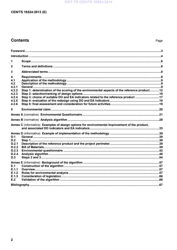 CEN/TS 16524:2013 is a technical specification published by the European Committee for Standardization (CEN). Its full title is "Mechanical products - Methodology for reduction of environmental impacts in product design and development". This standard covers: This Technical Specification describes a methodology for reducing the overall environmental impact through product design and development that is tailored to mechanical products as defined in 2.1. This methodology is particularly well suited to the redesign of an existing product; it can also be applied for the design of a new product provided the necessary assumptions regarding a (virtual) reference product are taken. It addresses enterprises which have decided to integrate an eco-design approach to optimise environmental impacts within the product life cycle, in relation to the other product aspects, such as functionality, quality, costs, etc. NOTE 1 This document targets persons who are directly involved in the design and development of mechanical products, as well as managers responsible for defining corporate policies, and decision-makers. The proposed methodology is intended to kick-start eco-design initiatives within companies as part of a teaching and continuous improvement approach. This document also includes a template that enterprises may use as part of the communication on their environmental approach. This document is neither intended nor suitable to compare products (even similar) of other suppliers. This document is neither intended nor suitable for certification purposes. NOTE 2 An example of implementation of the methodology is given in Annex D; the basic principles for the establishment of this method are given in Annex E.