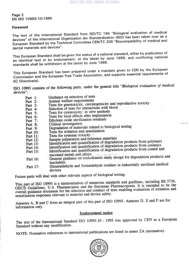 EN ISO 10993-10:1995 is a standard published by the European Committee for Standardization (CEN). Its full title is "Biological evaluation of medical devices - Part 10: Tests for irritation and sensitization (ISO 10993-10:1995)". This standard covers: This part of ISO 10993 describes test methods: a) to evaluate the potential of devices and their constituent materials to produce irritation; and b) to evaluate the potential of devices and their constituent materials to produce sensitization. These test methods are recommended for most categories of device and mode of body contact given in ISO 10993-1. Of the tests listed, those appropriate to the end use of the device are to be selected. Guidance is also given for the preparation of materials specifically in relation to the above tests. Note 1: Guidance on the conduct of supplementary tests which may be required specifically for use in the oral, rectal, penile and vaginal areas is given in Annex D.