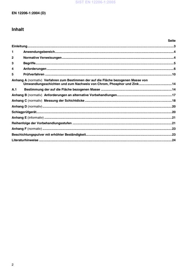 Messung der Schichtdicke.18Anhang D (normativ).20Schlagprüfgerät.20Anhang E (informativ).21Reihenfolge der Vorbehandlungsstufen.21Anhang F (normativ).23Beschichtungspulver mit erhöhter Beständigkeit.23Literaturhinweise.24SIST EN 12206-1:2005