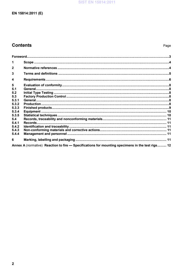 Reaction to fire — Specifications for mounting specimens in the test rigs . 12 SIST EN 15814:2011