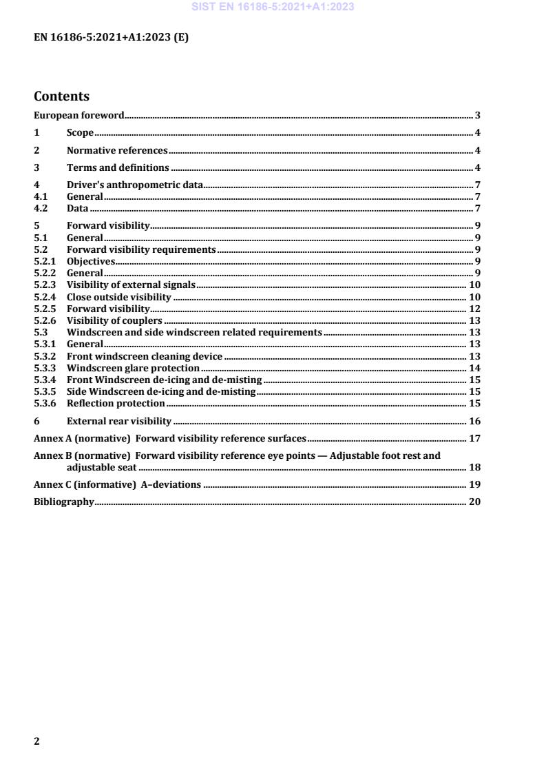 EN 16186-5:2021+A1:2023 is a standard published by the European Committee for Standardization (CEN). Its full title is "Railway applications - Driver's cabs - Part 5: External visibility for tram vehicles". This standard covers: This document specifies the external front and rear visibility conditions from cabs of tram vehicles and the associated assessment method. This document applies to vehicles operating on tram networks. This document does not apply to driver's auxiliary desks. This standard is not intended to be applied for tram train.