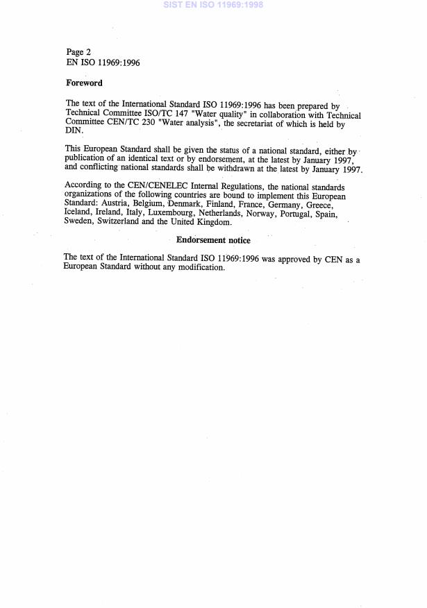 EN ISO 11969:1996 is classified under the following ICS (International Classification for Standards) categories: 13.060.01 - Water quality in general. The ICS classification helps identify the subject area and facilitates finding related standards.