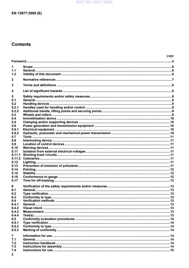 EN 13977:2005 is a standard published by the European Committee for Standardization (CEN). Its full title is "Railway applications - Track - Safety requirements for portable machines and trolleys for construction and maintenance". This standard covers: This document deals with the technical requirements to minimise the railway specific significant hazards of portable machines and trolleys used for work on tracks as listed in clause 4 and annex A which can arise during the commissioning, the operation and the maintenance of portable machines and trolleys when used as intended and under the conditions foreseen by the manufacturer. It does not deal with the general function of the machines (e.g. cutting, drilling, grinding). This document applies to portable machines and portable trolleys designed for work on the track with nominal track gauges of 1 435 mm and 1 668 mm and clearance gauge as defined in annex B including cutting machines and those designed for working on wooden sleepers. This document does not apply to portable trolleys coupled together, whether or not self propelled, and trolleys used for transporting personnel. For portable machines and trolleys used on railway lines with a different clearance gauge to that defined in annex B specific requirements concerning the clearance gauge may apply ). This document does not apply to the following: - requirements for quality of the work or performance of the machine; - regulations defined by each infrastructure controller for portable machine and trolley operation which shall be the subject of negotiation between the user and the manufacturer; - portable machines used from railway vehicles. This document does not establish the additional requirements for the following: - operation in severe conditions (e.g. extreme environmental conditions such as: freezing applications, high temperatures, corrosive environment, tropical environment, contaminating environments, strong magnetic fields); - operation subject to special rules as potentially explosive atmospheres; - electromagnetic compatibility, due to e.g. electronic components; - hazards occurring during decommissioning and/or recycling; - hazards due to vibration; - hazards due to wind speed grea