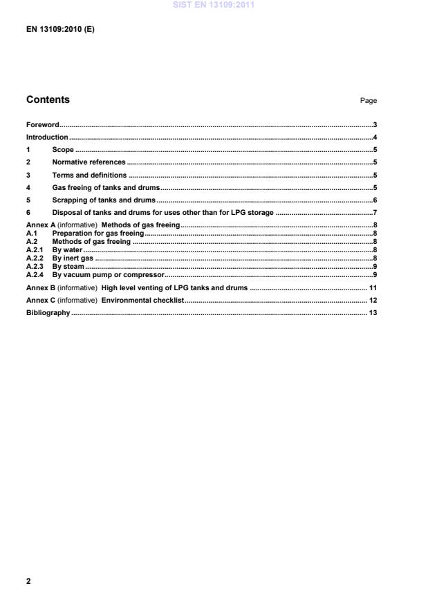 EN 13109:2010 is a standard published by the European Committee for Standardization (CEN). Its full title is "LPG equipment and accessories - LPG tanks and drums - Disposal". This standard covers: This European Standard specifies methods for the safe gas freeing and disposal of LPG tanks and drums above 150-litre water capacity. This European Standard is applicable to the following: - tanks manufactured in accordance with EN 12542; - drums manufactured in accordance with EN 14893, and - LPG tanks and drums manufactured in accordance with any other pressure vessel code.