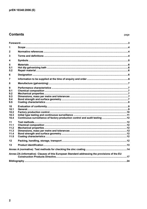 prEN 10348-1 is a draft published by the European Committee for Standardization (CEN). Its full title is "Steel for the reinforcement of concrete - Galvanized reinforcing steel - Part 1: General". This standard covers: This European Standard specifies requirements for galvanized (hot-dip zinc coated) reinforcing steel in the form of bars, coils (rod, wire), welded fabric and lattice girder for the reinforcement of concrete. It specifies seven classes of coating, class A to class G, corresponding to different coating masses (see 9.5.4). This specification may also be understood to cover other classes of coating whose details are not stated in this edition of the standard but whose specified values of properties are defined consistenly with Clause 9 and the conformity of which is carried out according to Clause 10. This European Standard does not apply to galvanized (hot-dip zinc coated) reinforcement for prestressing or components of these reinforcements.