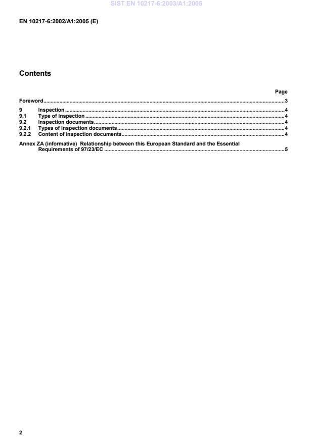 Modify the clause 9 Inspection and the Annex ZA in order to make them in line with the provision of Directive 97/23/EC (PED).