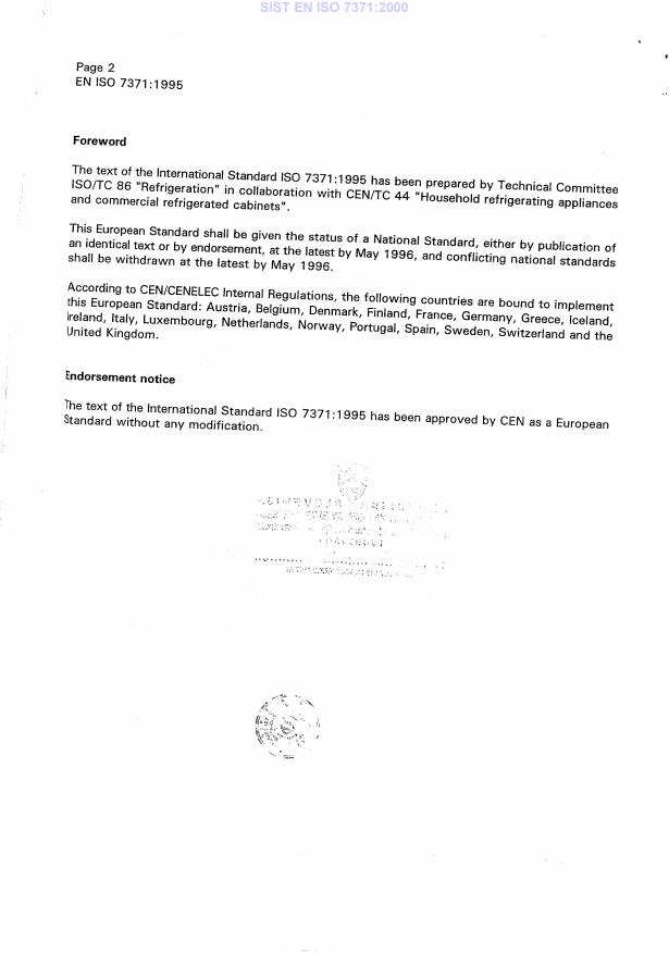 EN ISO 7371:1995 is classified under the following ICS (International Classification for Standards) categories: 97.040.30 - Domestic refrigerating appliances. The ICS classification helps identify the subject area and facilitates finding related standards.